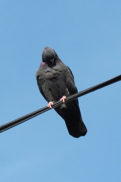 A Pigeon on an Electric Wire Bows Its Head (21-Oct-14; © Richard L. Bowman)