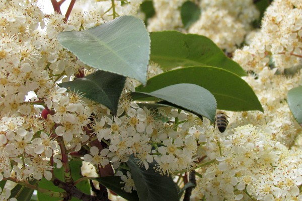Some weeks later in the middle April, I found this bush just full of big clusters of white blossoms. But again, I do not know the name of this plant.
