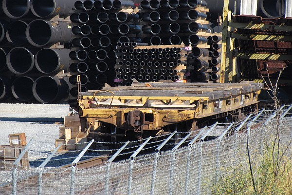 Flat Car Ready for Pipe, Near R. R. Donelly, Harrisonburg, VA, USA (27-Sep-13; © Richard L. Bowman)