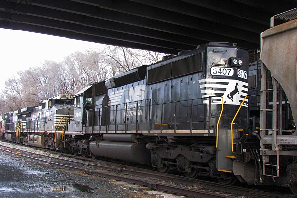 The following are in chronological order from the older ones to the more recent ones. The first one, NS 3407, is an EMD SD 40-2 locomotive made by Electro-Motive Diesel, Inc., owned by Caterpillar.